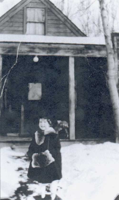 On Nov. 17, 1926 I went to school happy it was my 8th birthday. We were told very little in those days about how babies got here. All I knew Dr. Owens told me awhile before that if I was a good girl hed bring me in his large bag a baby sister. He only guess(ed) at what sex it would be for no test were ever taken. I came running home from school to see my cake + present only to find Mrs. Sudbury blocking the inside Kit. Door I did notice two layers of cake unfrosted laying on draining board when I was told to go across the street to her house + stay there till she came for me. I could imagine what was going on no mama to great me it was my birthday. Well I didnt do much playing only wonder + worry till early evening when I was brought home. There was my cake frosted but where were the little flower cups that mama always put the candles in. The candles were stuck instead in wax paper. I was told to go into the bed room mama was in there with my birthday present. I ran in to see her laying in bed with an indian baby in her arms she told me this was my baby sister. What(,) that scrany (scrawny?) black head baby couldnt be my sister.