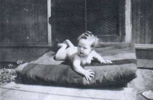 On Nov. 17, 1926 I went to school happy it was my 8th birthday. We were told very little in those days about how babies got here. All I knew Dr. Owens told me awhile before that if I was a good girl hed bring me in his large bag a baby sister. He only guess(ed) at what sex it would be for no test were ever taken. I came running home from school to see my cake + present only to find Mrs. Sudbury blocking the inside Kit. Door I did notice two layers of cake unfrosted laying on draining board when I was told to go across the street to her house + stay there till she came for me. I could imagine what was going on no mama to great me it was my birthday. Well I didnt do much playing only wonder + worry till early evening when I was brought home. There was my cake frosted but where were the little flower cups that mama always put the candles in. The candles were stuck instead in wax paper. I was told to go into the bed room mama was in there with my birthday present. I ran in to see her laying in bed with an indian baby in her arms she told me this was my baby sister. What(,) that scrany (scrawny?) black head baby couldnt be my sister.