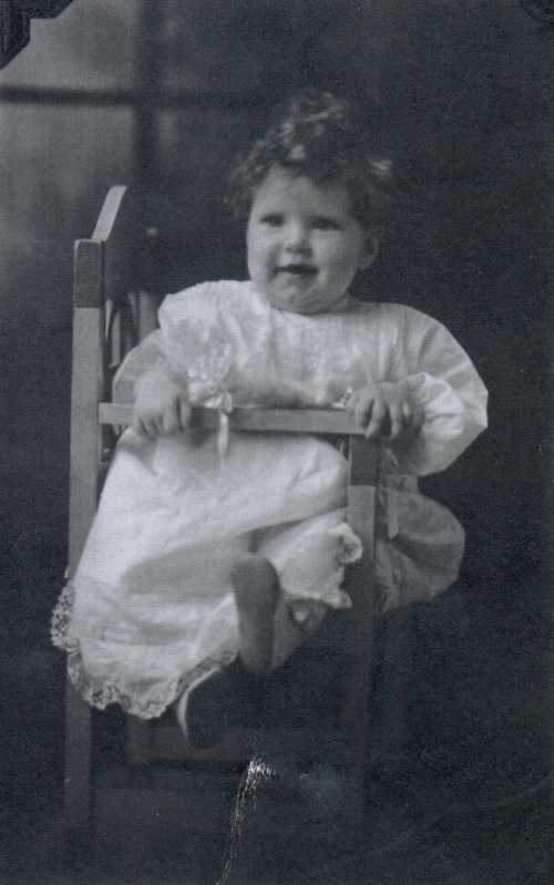 A few days before Nov. 17, 1918 Maybel + Vern Rawlings left Magna Utah where they lived since their Marriage July - to go to Emily Rawlings home in Mill Creek Utah. Dr. Rothwell was mothers Dr + it was getting close for me to be born. Daddys mother Emily had help deliver babies for a number of years so helped deliver me. Th e Armistics had been signed ending W. W. 1 6 days before Nov. 11, 1918 it was also the winter of the influenza epidemic that so many people died that they closed all churches + large gatherings. The Lord blessed me at this time because Grandma had but one extra bed. Dad came down with the flue and was put to bed with mother + me which neither of us took. In Jan 1919 the bishop + another Elder came to our house and gave me a name + a blessing.